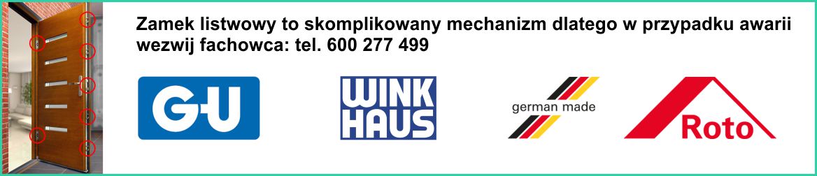 Z pewnością do największych atutów zamków listwowych – które zauważają nie tylko profesjonaliści z Pogotowia ślusarskiego, ale także użytkownicy – należy duża skuteczność. Stanowią one jeden z lepszych wyborów, jeśli chodzi o zabezpieczenia antywłamaniowe, a ponadto są szczelne i solidnie osadzone w drzwiach – oczywiście pod warunkiem prawidłowego, fachowego montażu zamka listwowego. Doświadczeni ślusarze z Pogotowia zamkowego służą pomocą przy wymianie oraz konserwacji tego typu złożonych mechanizmów zamkowych. Tel.: 600-277-499